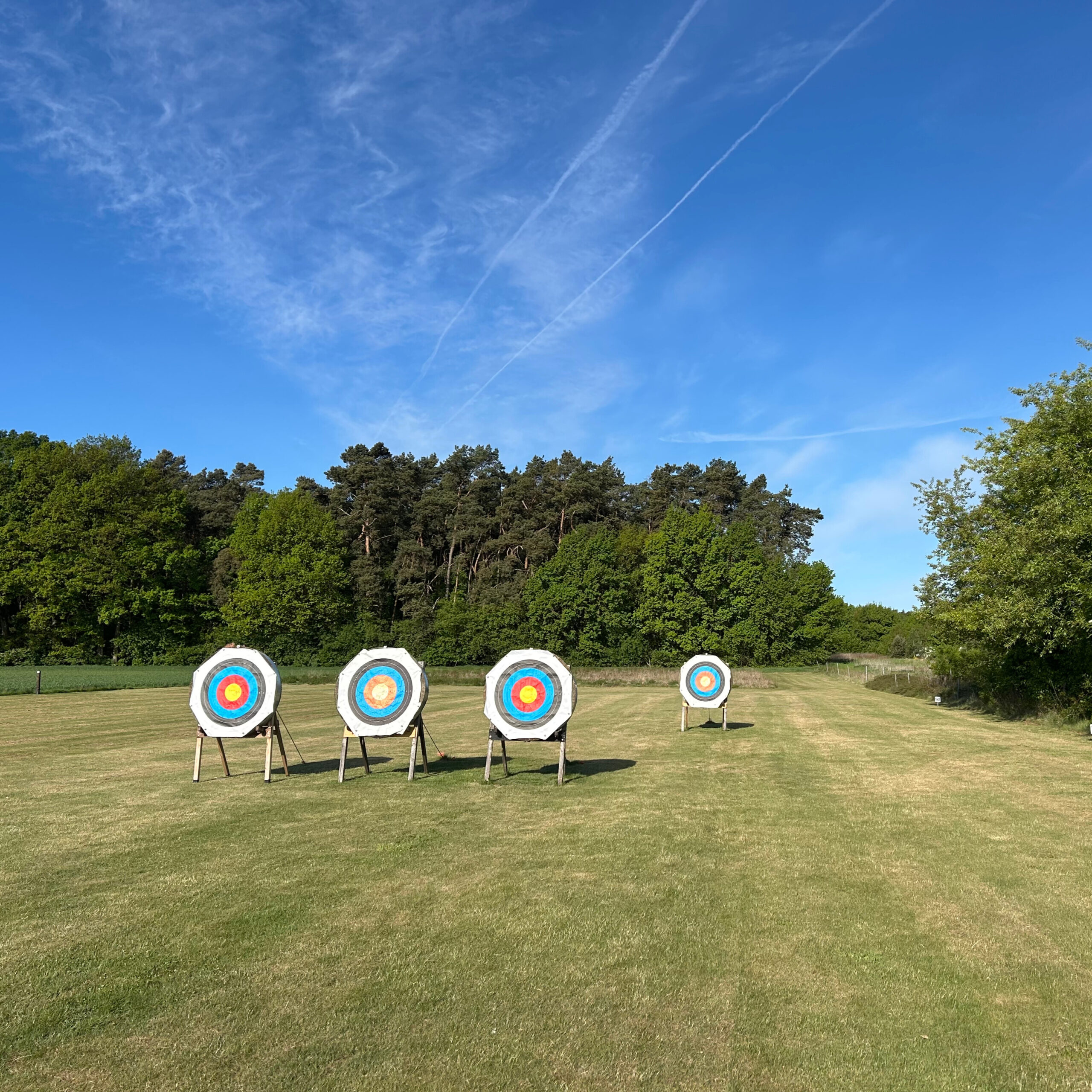Der Bogenplatz liegt ganz in der Nähe des Schützenhauses und bietet Platz für 15 Scheiben. Es kann bis auf 90 Meter geschossen werden. Ein Parkplatz befindet sich direkt vor der Anlage.