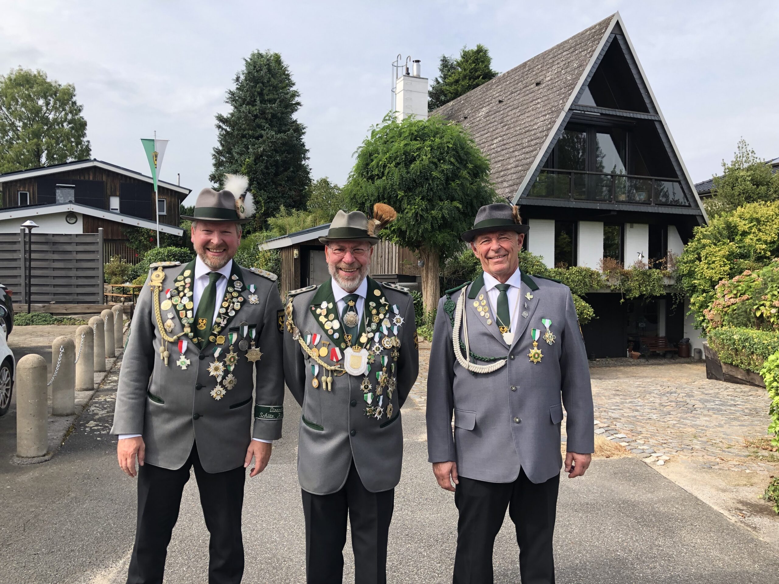 Unbemerkt vom großen Trubel wurde dem amtierenden König Wolfgang Scharfenberg feierlich die Königsscheibe mit dem bedruckten Konterfei seines Maskottchens überreicht. Diese nimmt nun den jüngsten Platz in der Königlichen Ahnengalerie des Schützenhauses ein.