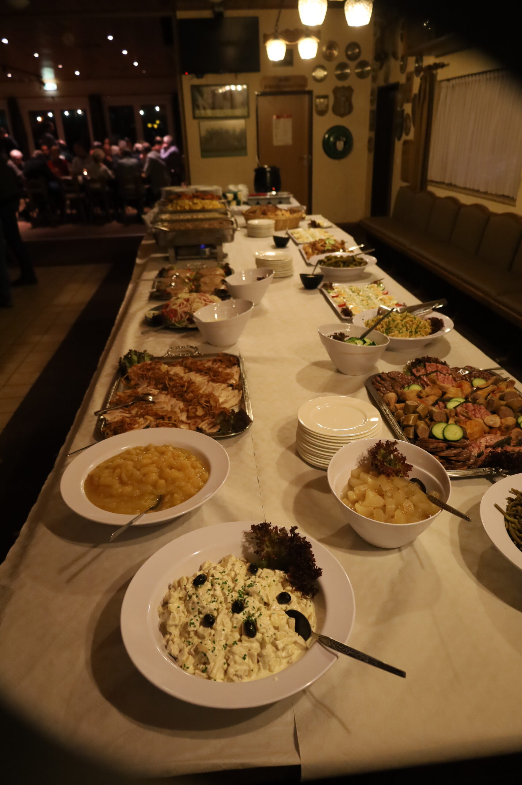 Nach einer kurzen Dankesansprache durch den ersten Vorsitzenden und amtierenden König Eyck Morche wurde das Buffet eröffnet. Es gab eine große und reichliche Auswahl von Spezialitäten, die zur Verköstigung angeboten wurden wie deftige Hochzeitssuppe, frische Wurst und Sülze, Spießbraten, Grützwurst, Schnitzel, Bratkartoffeln und vielem mehr.